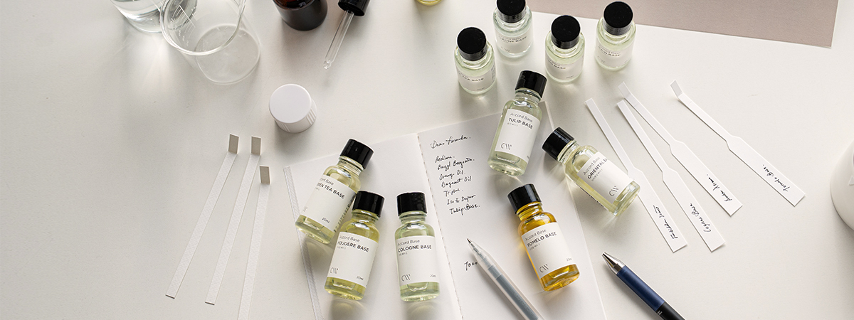 調香原料(基底)的香氣是僅呈現單一意象的「單一香味」原料,為調香提供基準點。可以將精油與基底一起混合調香,或添加至香水中以表現出特別的香氣。
