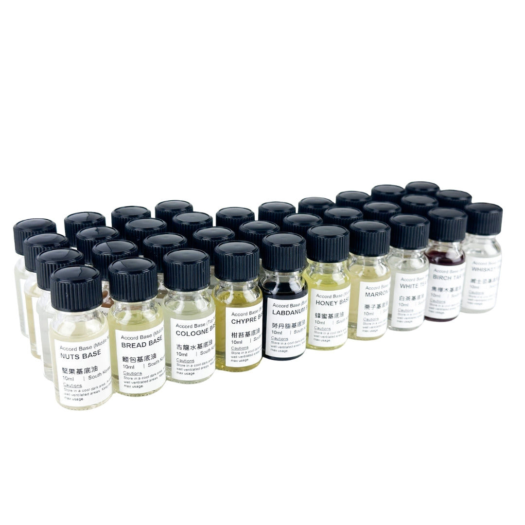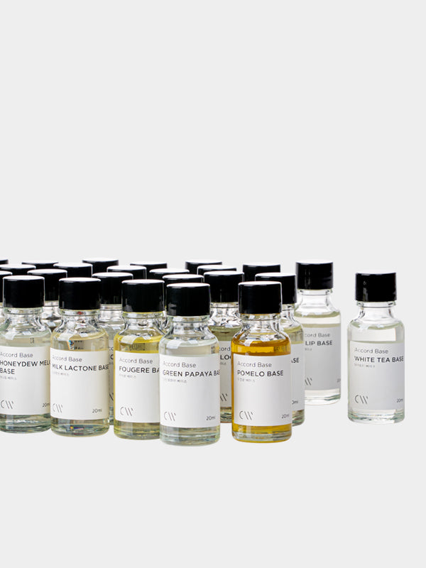 這是2025年下半年全新推出的CW調香基底套組,共包含34種不同香型的原料,所有香味以 10ml / 20ml / 100ml 單位呈現。為了方便調香使用,套組涵蓋了8種香調類型,能夠創造出更廣泛且豐富的香氣組合。商品不包含外盒包裝,出貨時將附上34個專用滴管,與34種調香基底一同寄送。