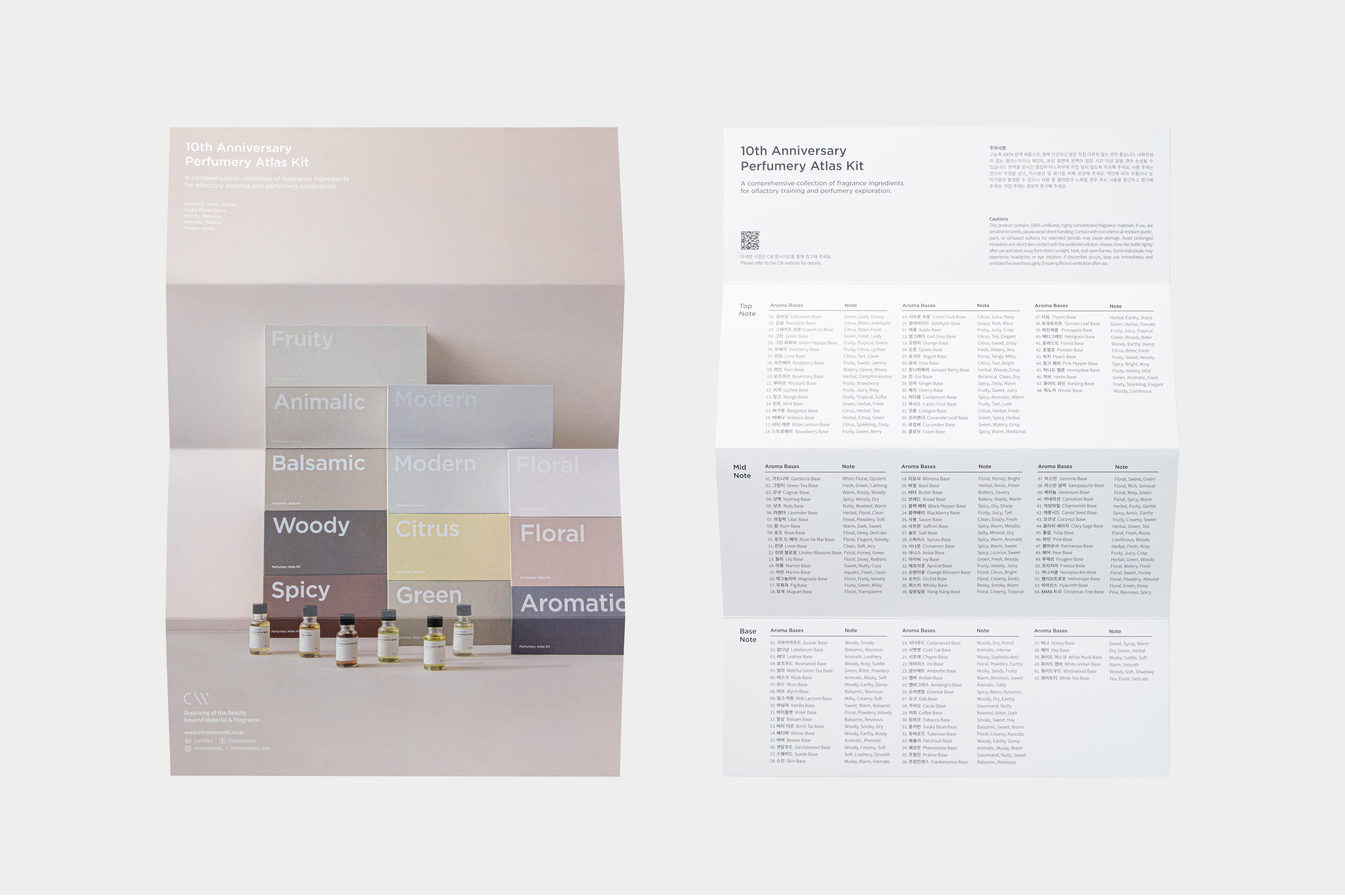 這是擴展2025年下半年調香可能性的專業調香套裝(100ml x 144種) ,針對每個香味類型進行了最佳化和重構。由芳香、青香、柑橘、果香、花香(2種)、辛辣/茴香、木質、香脂、動物香、現代(2種)香調組成。每套裝包含12種調香成分,總共可以體驗144種香味。