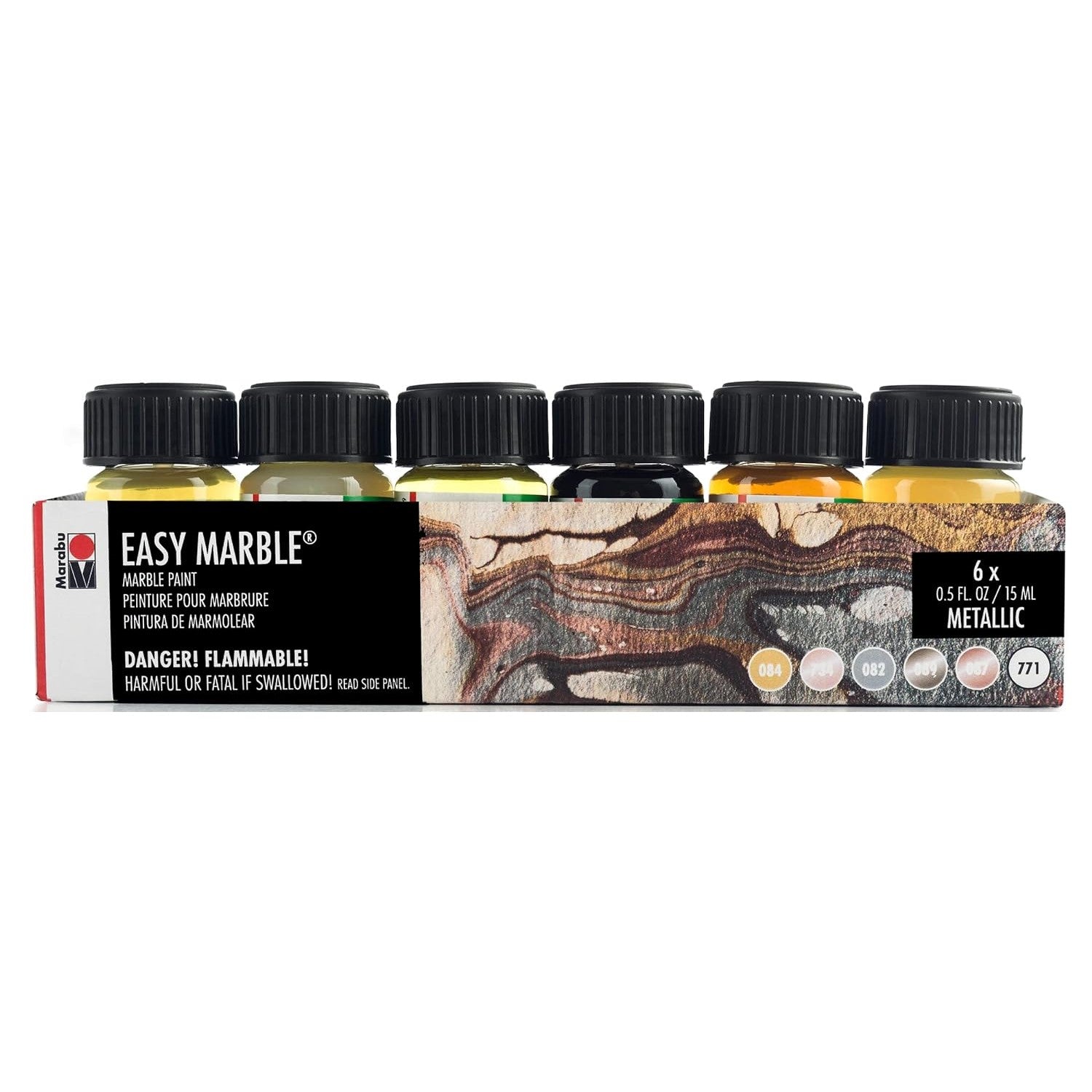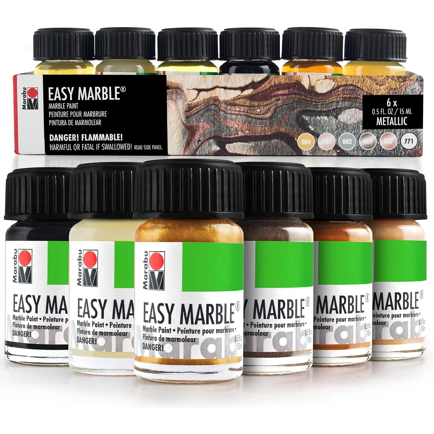 - 滴,浸,完成!使用 Easy Marble 顏料和水即可輕鬆進行水浸!在幾秒鐘內創造出色彩繽紛、優雅的大理石效果。將大理石花紋顏料滴在水上,繪製圖案,將物體慢慢浸入水中,然後快速拉出。